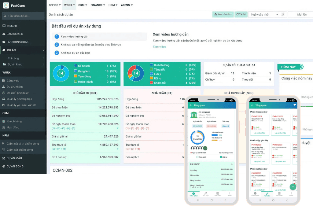 Quản lý trực tiếp dự án trên phần mềm FastCons