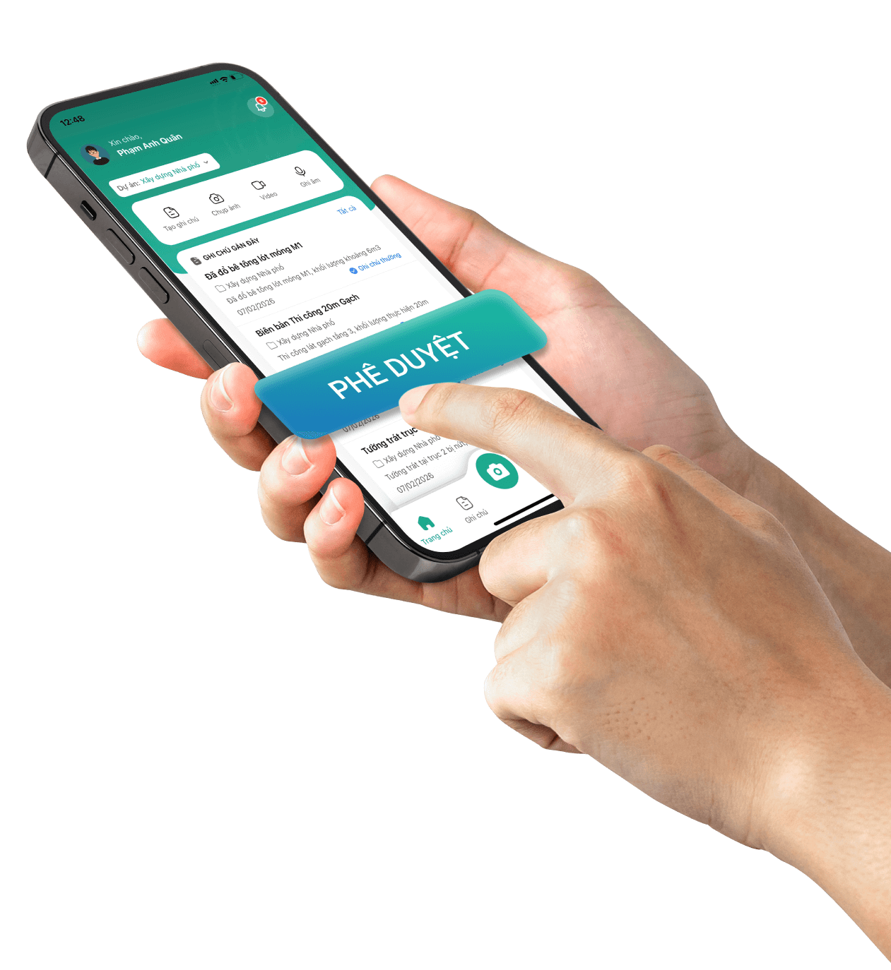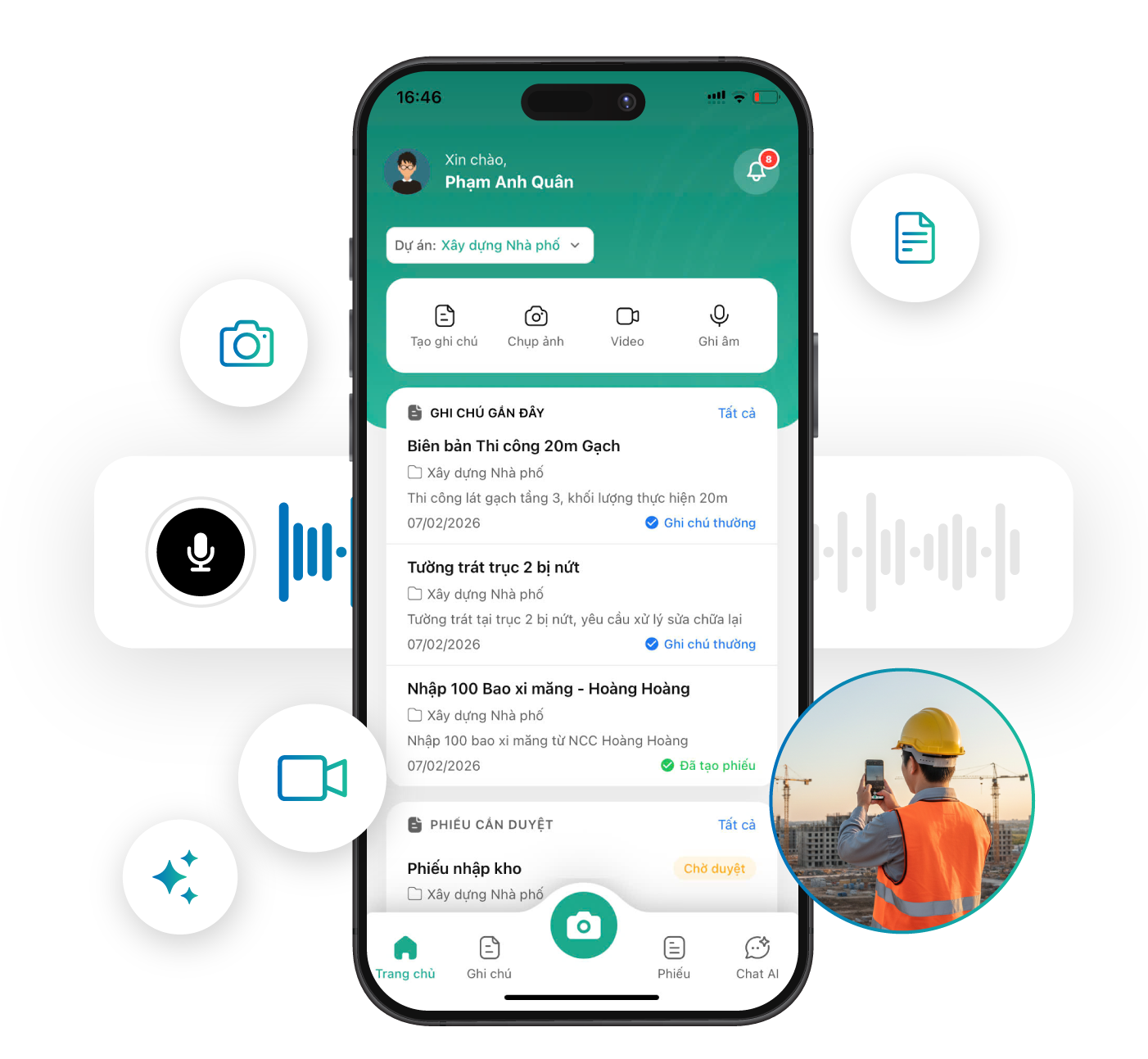 Tạo nhanh ghi chú thông tin công trình với nhiều định dạng: chụp ảnh, text, ghi âm, video